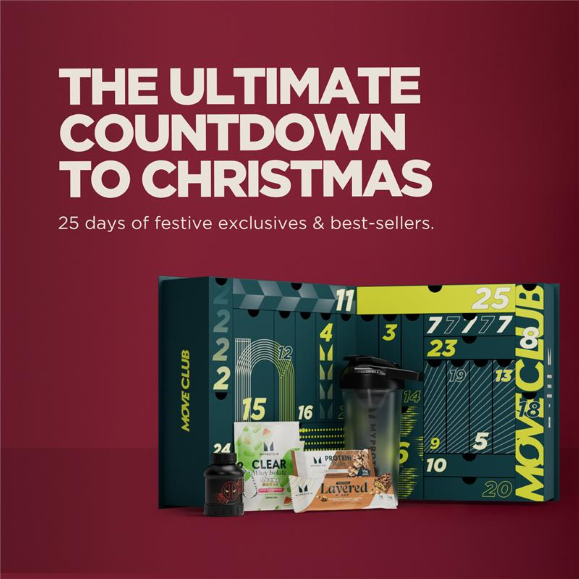 Behind every door, you’ll find performance-focused fuel. Think high-protein snacks, science-backed formulas, and winter-exclusive essentials.